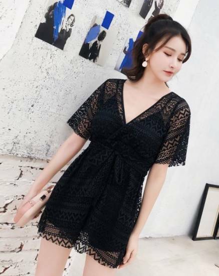 水着 ワンピース 体型カバー ワンピース水着 オールインワン 水着 ワンピース 40代 大きいサイズ 2XL 3XL 4XL 5XL 水着 レディース ママ 可愛い 夏 総レース Vネック 黒 水着