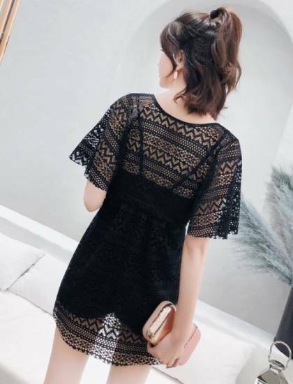 肌見せに抵抗ある方にもオススメなお洒落でシックな水着です。