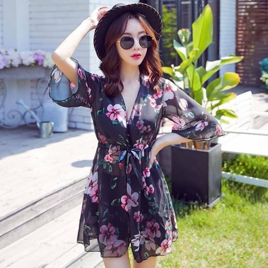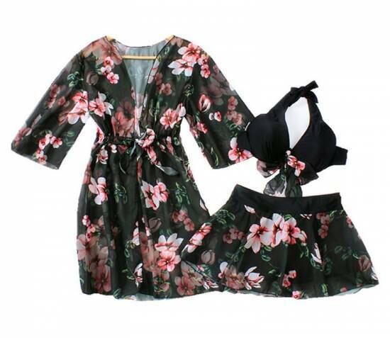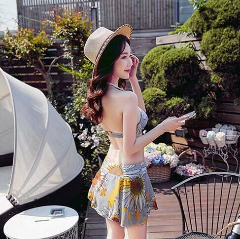 水着 ビキニ 3点セット カバーアップ 付き セクシー 大きいサイズ 2XL 3XL 4XL 体型カバー レディース 可愛い 花柄 プリント スカート ホルター セット水着 ミニワンピ