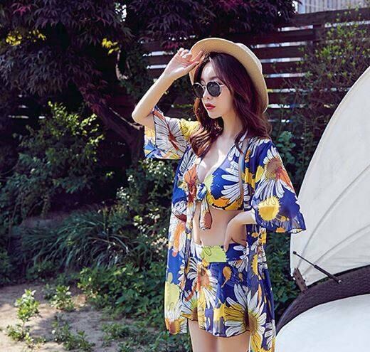 水着 ビキニ 3点セット カバーアップ 付き セクシー 大きいサイズ 2XL 3XL 4XL 体型カバー レディース 可愛い 花柄 プリント スカート ホルター ビキニ セット水着 ミニワンピ