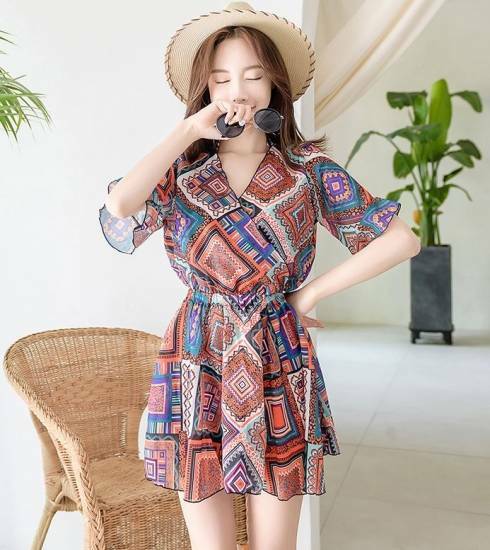 水着 ビキニ 3点セット ミニワンピ 付き セクシー 三角 大きいサイズ 4XL 体型カバー レディース 夏 新作 温泉 ホルターネック 可愛い プリント カバーアップ セット水着