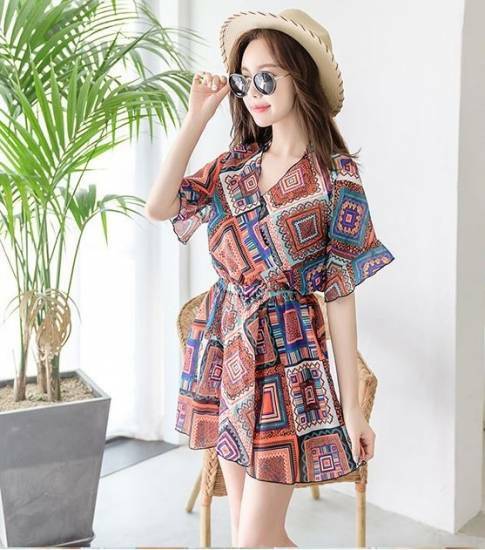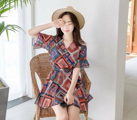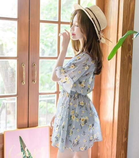 同柄のシフォンミニワンピが優し気でキュートな印象に☆