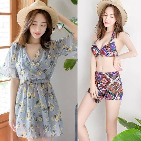 ビキニ上下+ミニワンピの3点セット。