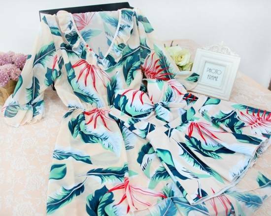ボタニカルプリントがリゾートを感じさせてくれます。