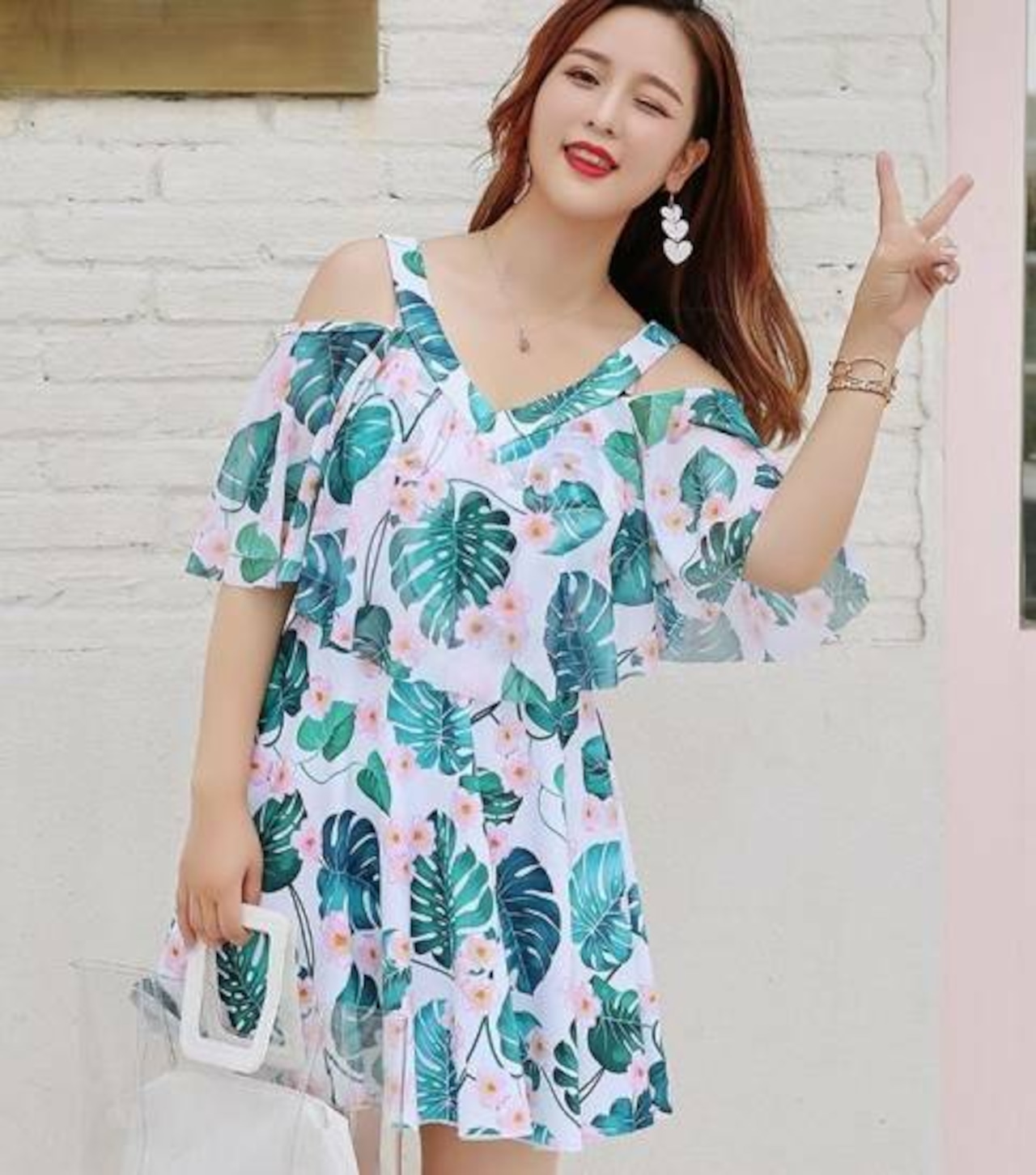 水着 ワンピース 体型カバー ワンピース水着 オールインワン 水着 ワンピース 40代 大きいサイズ 5XL 水着 レディース ママ 可愛い 夏 新作 ボタニカル柄 オフショル フレアスカート 水着