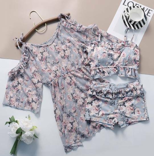 ショルダーのカットアウトがお洒落なミニワンピースの3点セット。