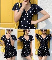 水着 ワンピース 体型カバー ワンピース水着 オールインワン 水着 ワンピース 40代 大きいサイズ 4XL 水着 レディース 可愛い 夏 新作 ドット柄 Vネック 半袖 フリル スカート 水着
