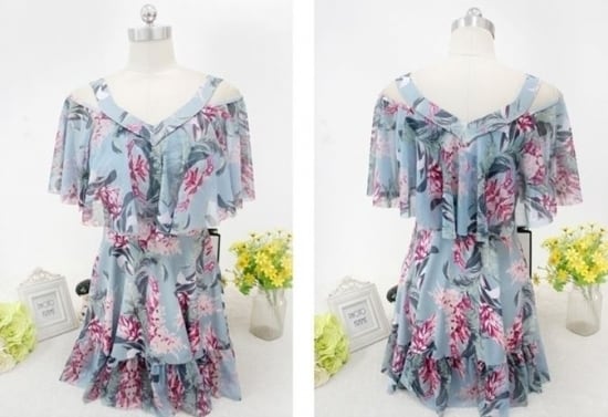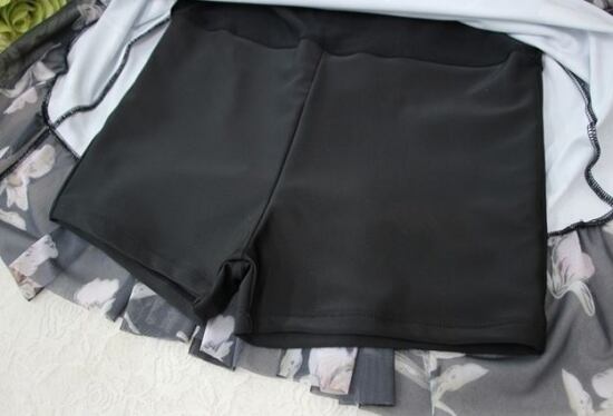幅広フリルに長めのスカート丈で気になる体型をカバーしてくれます。
