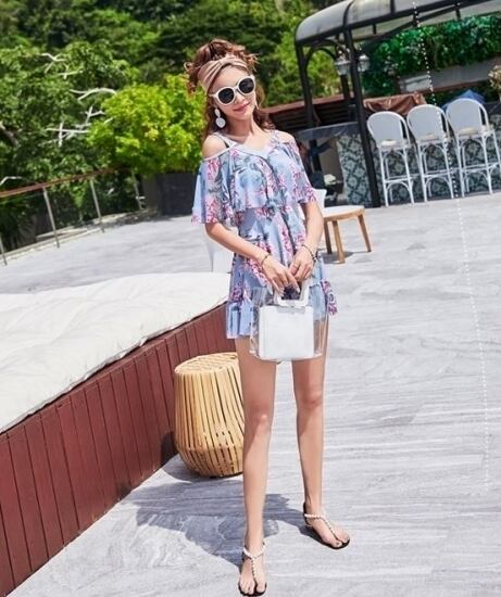 水着 ワンピース 体型カバー ワンピース水着 オールインワン 水着 ワンピース 40代 大きいサイズ 5XL 水着 ママ レディース 可愛い 夏 新作 ボタニカル柄 花柄 オフショル フレアスカート