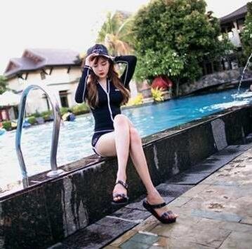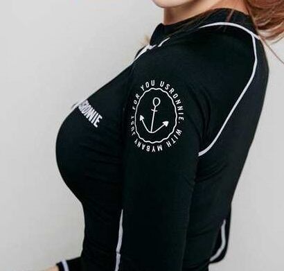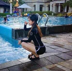 シンプルでスポーティーなデザインのラッシュガード&スポーツビキニの三点セット。