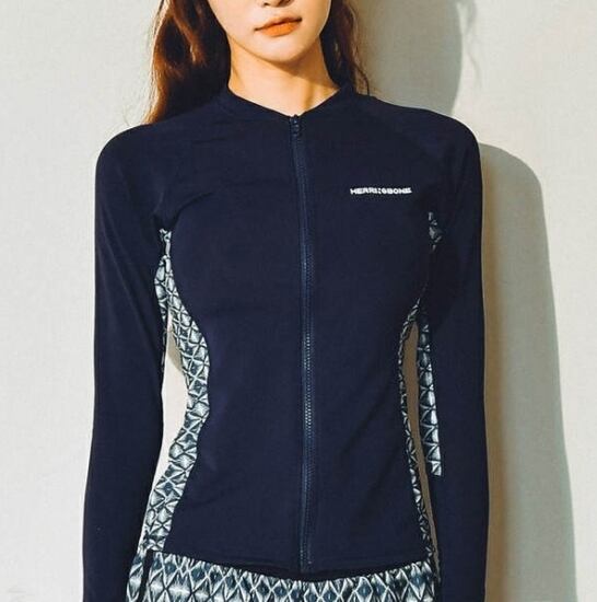 マリンスポーツにかかせない、バイカラーフルジップラッシュガードセット♪