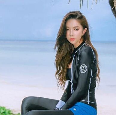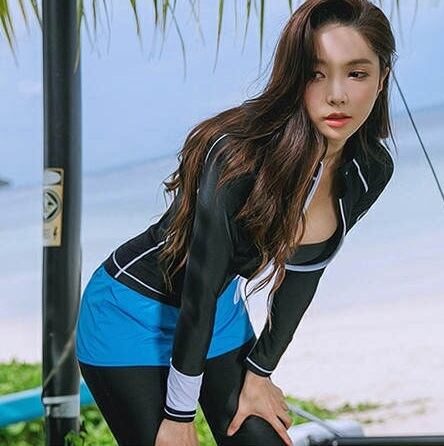 シンプルなブラックのラッシュガードはスリムなデザインで体型カバー力抜群☆