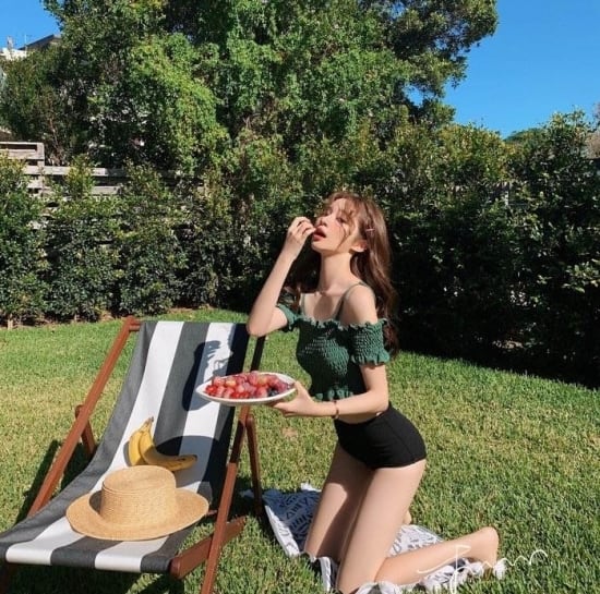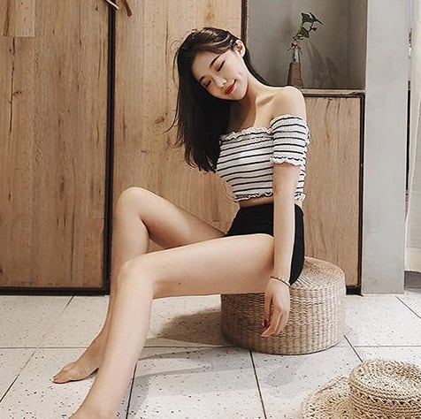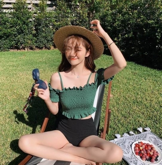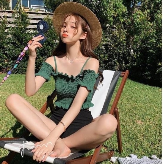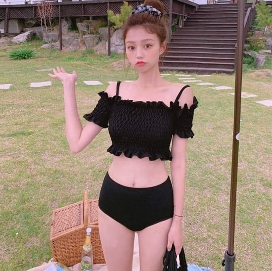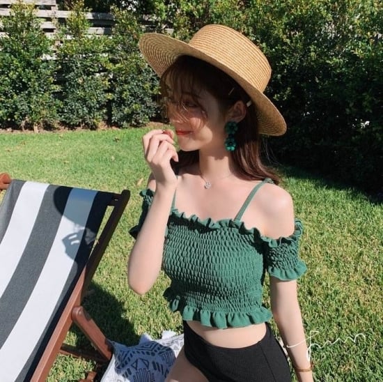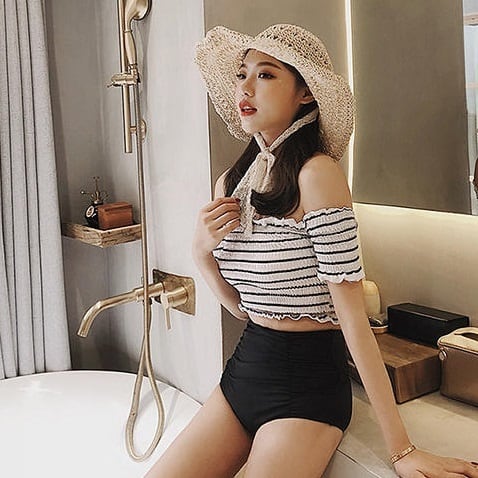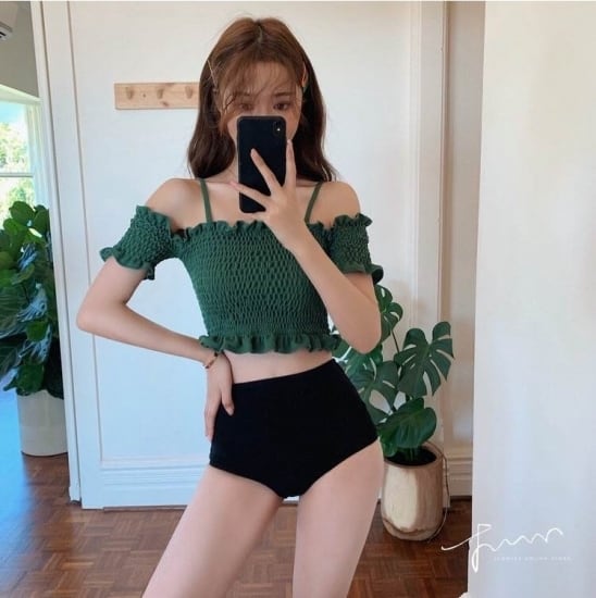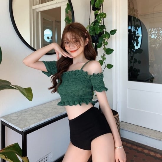 とってもキュートなシャーリングオフショルダービキニ♪