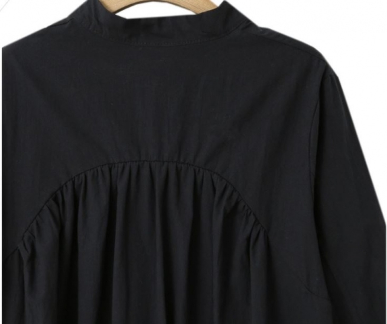 シャツワンピース シャツワンピ 大きいサイズ 4XL 長袖 ワンピース プリーツスカート シャツワンピ ブラック 黒 2019 秋冬新作 秋 秋色 秋服 秋sale シャツワンピース シャツワンピ