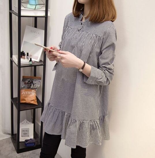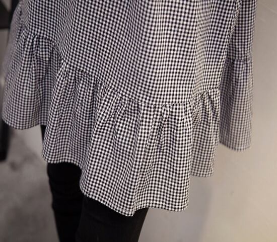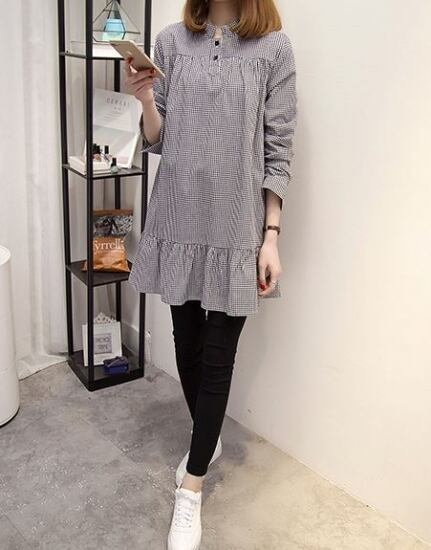 ギンガムチェック柄が可愛いハイネック長袖のチュニックワンピース。
