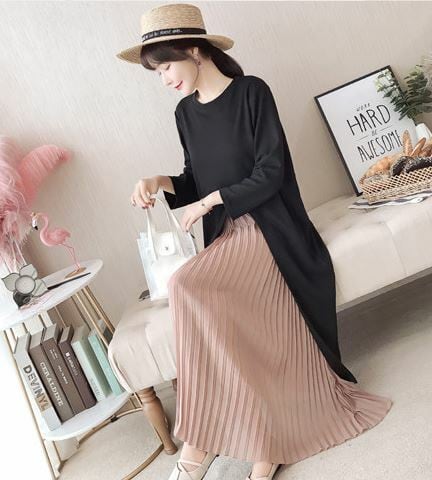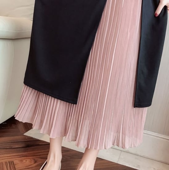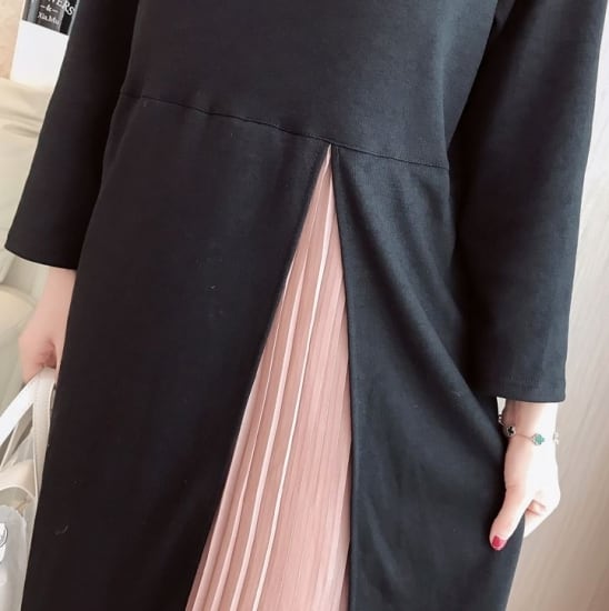 ブラックトップから除くピンクのプリーツスカートが可愛い♪