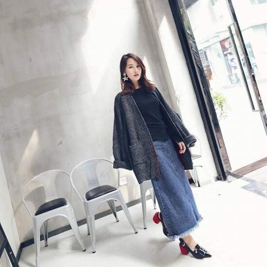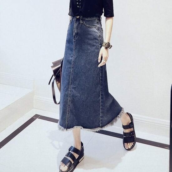 どんなトップスにも合わせやすい定番のデニムロングスカート♪