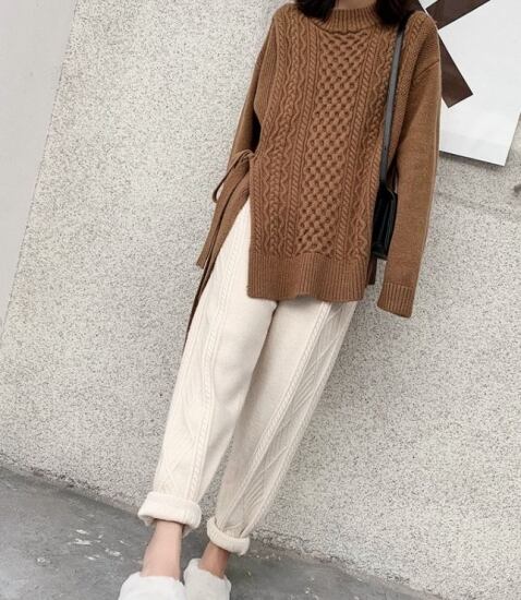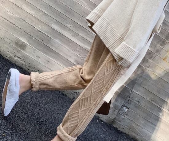 パンツ ニットパンツ レディース ボトムス 大きいサイズ カジュアル リブニット ハーレムパンツ テーパードパンツ ケーブル 暖か 秋冬新作 秋 秋色 秋服 秋sale ゆったり パンツ ニットパンツ