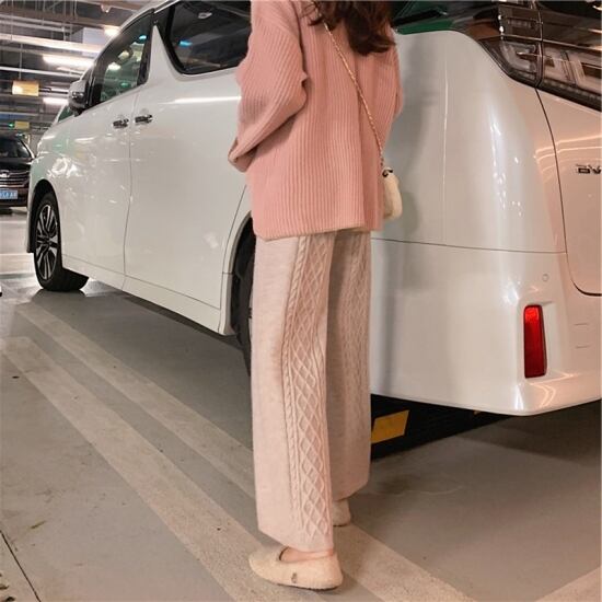 ニットパンツ パンツ レディース ボトムス カジュアル リブ ニット ワイドレッグ クロップド パンツ 大きいサイズ 暖か お洒落 秋冬新作 秋 秋色 秋服 秋sale ゆったり ニットパンツ パンツ