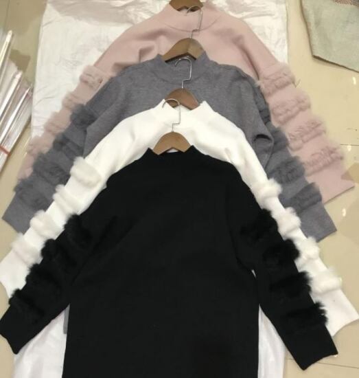 ニット セーター レディース トップス ラウンドネック ファートリムスリーブ ニット チュニック ワンピース ワンピ 大人可愛い 秋冬新作 秋 秋色 秋服 秋sale 韓国 ゆったり ニット セーター