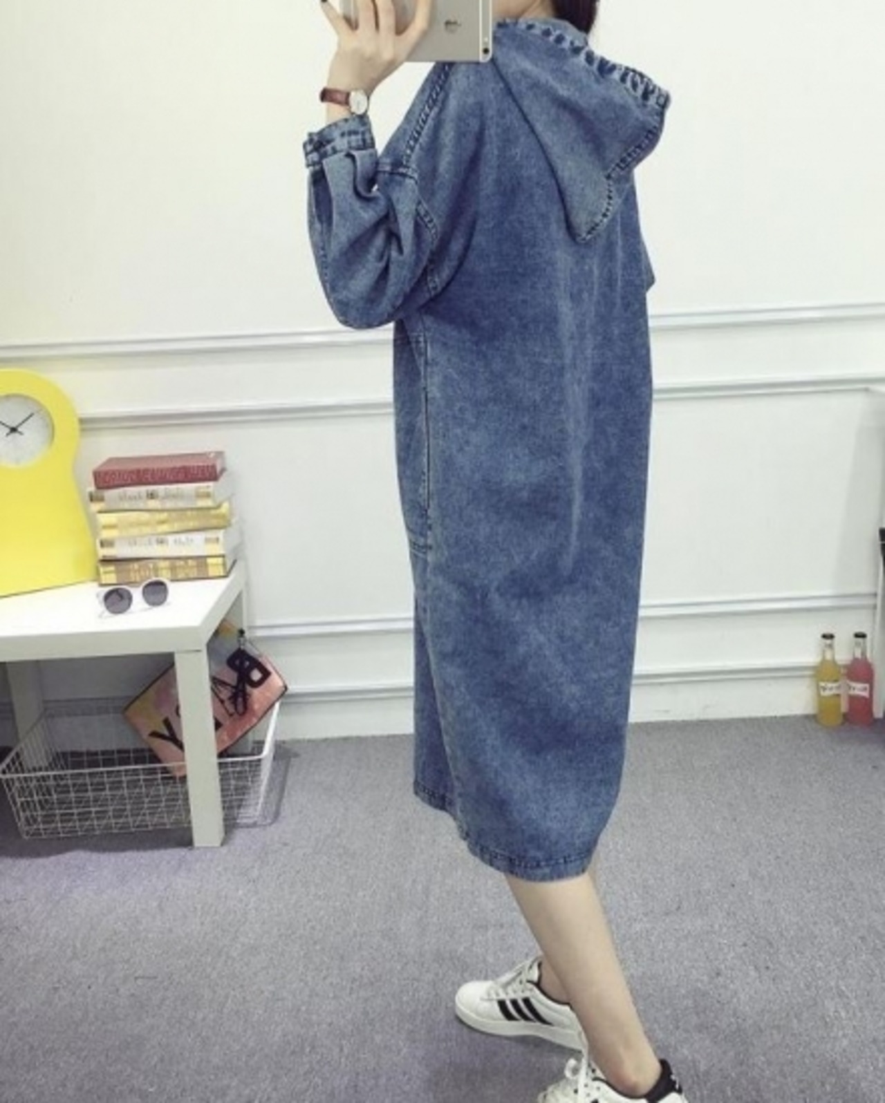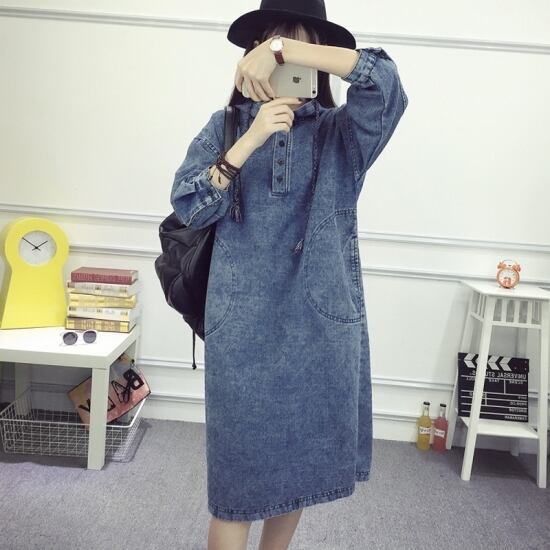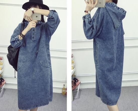 デニムワンピース デニムワンピ レディース カジュアル デニム フード付き 長袖 ミモレ丈 ワンピース ワンピ 秋冬新作 秋 秋色 秋服 秋sale 韓国 トレンド デニムワンピース デニムワンピ