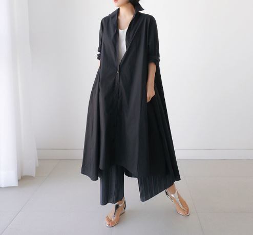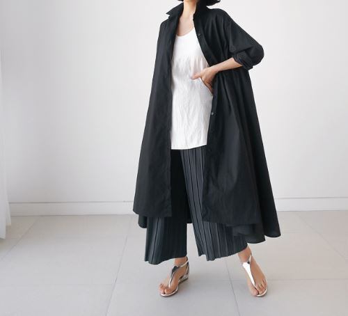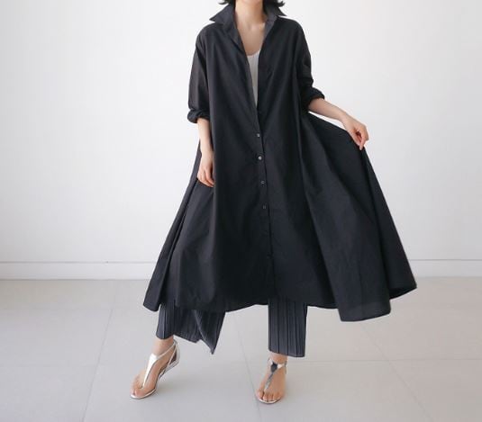 Aラインに広がるオーバーシルエットが可愛いロングシャツワンピース。