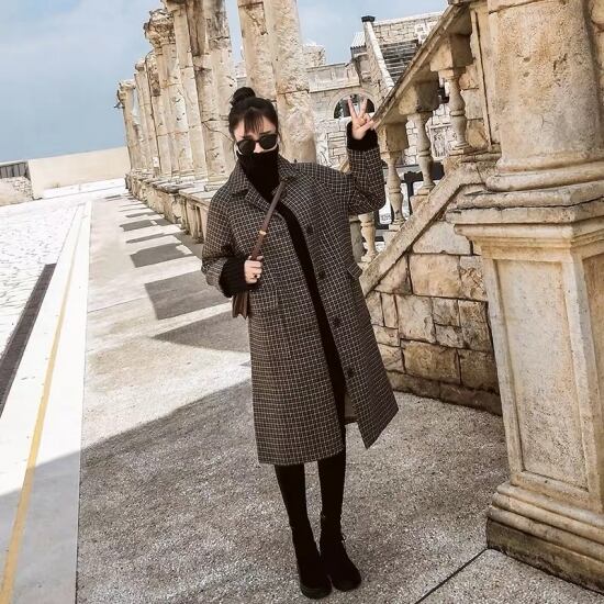 【取寄】 ロングコート ロングジャケット レディース アウター レトロ ウィンドーペーンチェック ステンカラーコート 大きいサイズ 秋冬新作 秋 秋色 秋服 秋sale ゆったり ロングコート ロングジャケット