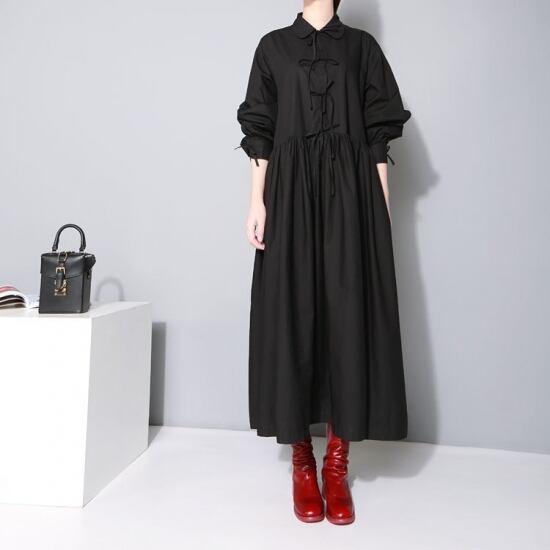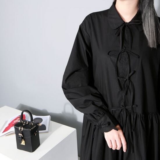 シャツワンピース シャツワンピ ロング 春夏新作 春服 夏服 春物 ロング丈 七分袖 シック リボン モノトーン ゆったり 体型カバー シャツワンピース シャツワンピ 春夏新作 春服 夏服 春物