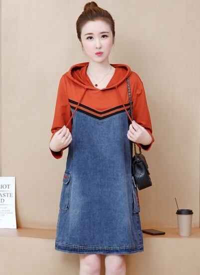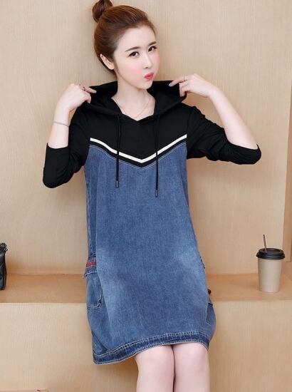 取寄 ワンピース ワンピ レディース ひざ丈 Aライン ワンピース フード付き スウェット デニム 異素材 切替え ワンピ 大きいサイズ 春新作 春 春色 春服 春sale カジュアル ワンピース ワンピ