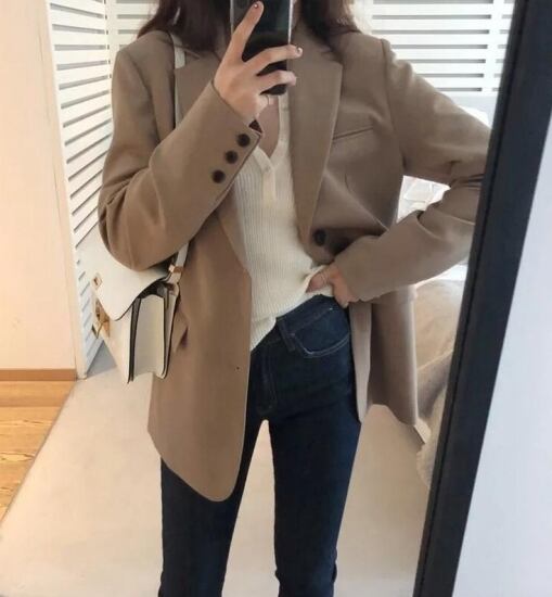 【取寄】ジャケット コート レディース アウター テーラード ジャケット シンプル スプリング コート 大きいサイズ 2カラー 韓国 トレンド 春新作 春 春色 春服 春sale ゆったり ジャケット コート