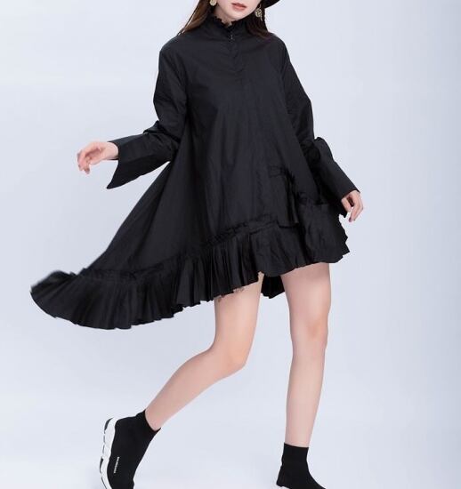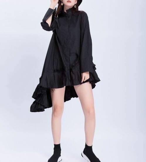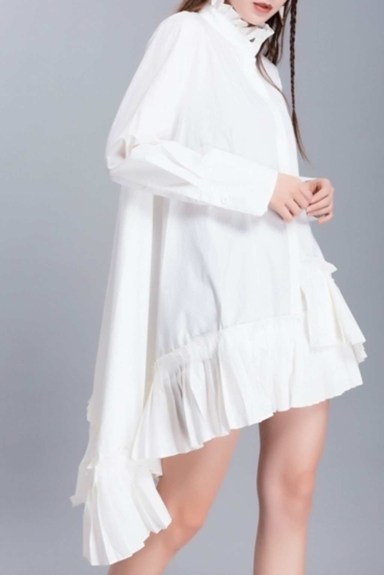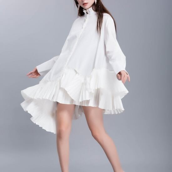 【取寄】シャツワンピース シャツワンピ レディース ひざ丈 ワンピース アシンメトリー プリーツ フリル ワンピ 大きいサイズ 春新作 春 夏 春色 春服 春sale ゆったり シャツワンピース シャツワンピ