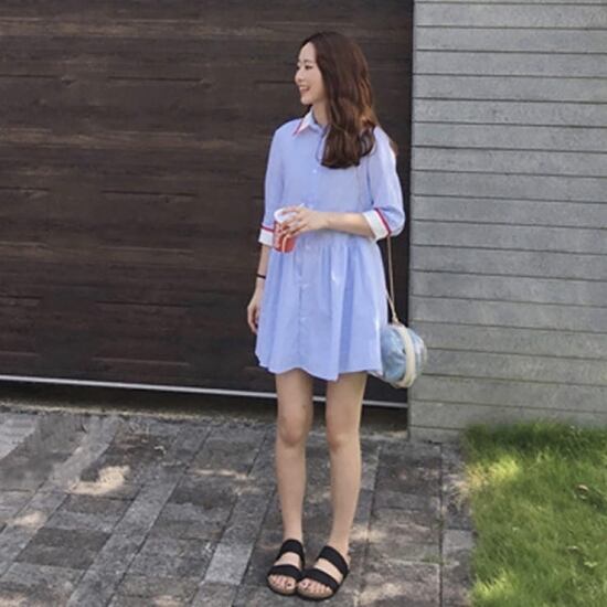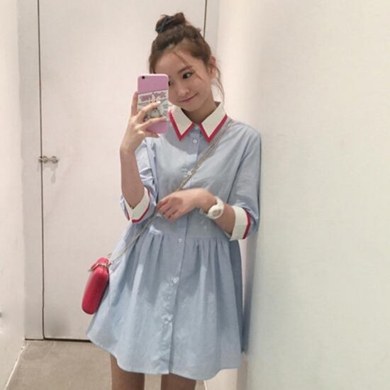 ワンピース シャツ レディース ミニ丈 春 夏大きいサイズ 襟 カジュアル ワンピース シャツ レディース ミニ丈 春 夏 大きいサイズ 襟 カジュアル かわいい ふんわり 七分袖 シャツワンピ