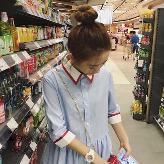 春らしい爽やかなブルーのミニ丈ワンピース☆