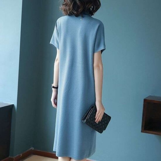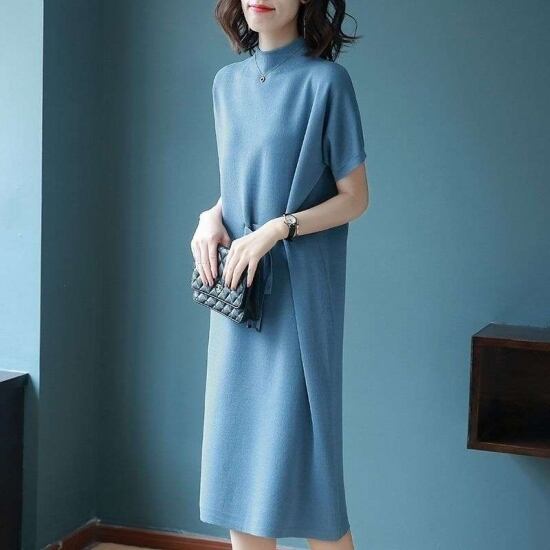 ワンピース ロング ミモレ丈 フォーマル 半袖 夏 大きいサイズ きれいめ 縦長 Iライン ワンピース ロング ミモレ丈 フォーマル 半袖 大きいサイズ 綺麗め 縦長 ニット 薄手 ハイネック リボン