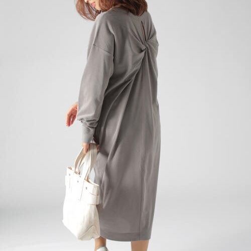 ワンピース ロング レディース 長袖 大きいサイズ 体型カバー ラウンドネック リブ 袖 ワンピース ロング レディース 長袖 大きいサイズ 体型カバー ラウンドネック リブ ねじり デザイン性