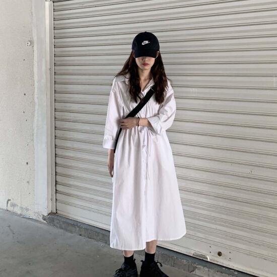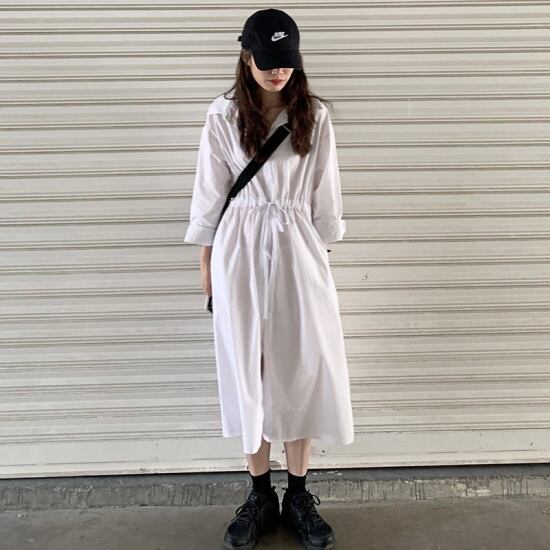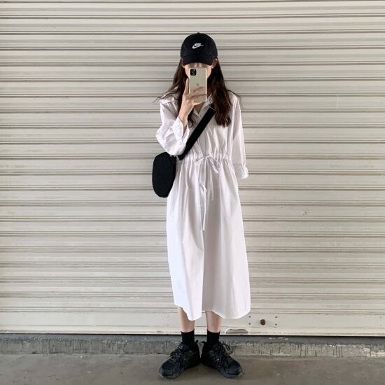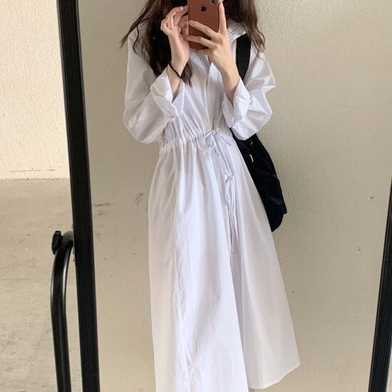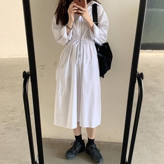 ワンピース ロング シャツ レディース 白 大きいサイズ ロング丈 長袖 羽織れる ワンピース ロング シャツ レディース 白 大きいサイズ ロング丈 長袖 羽織れる ウエストマーク ゆるふわ 可愛い