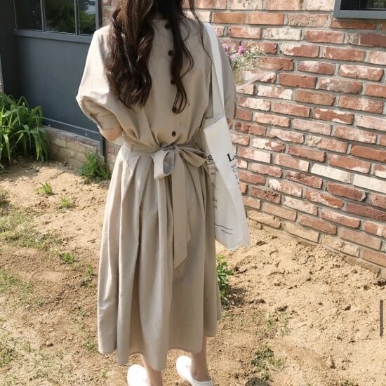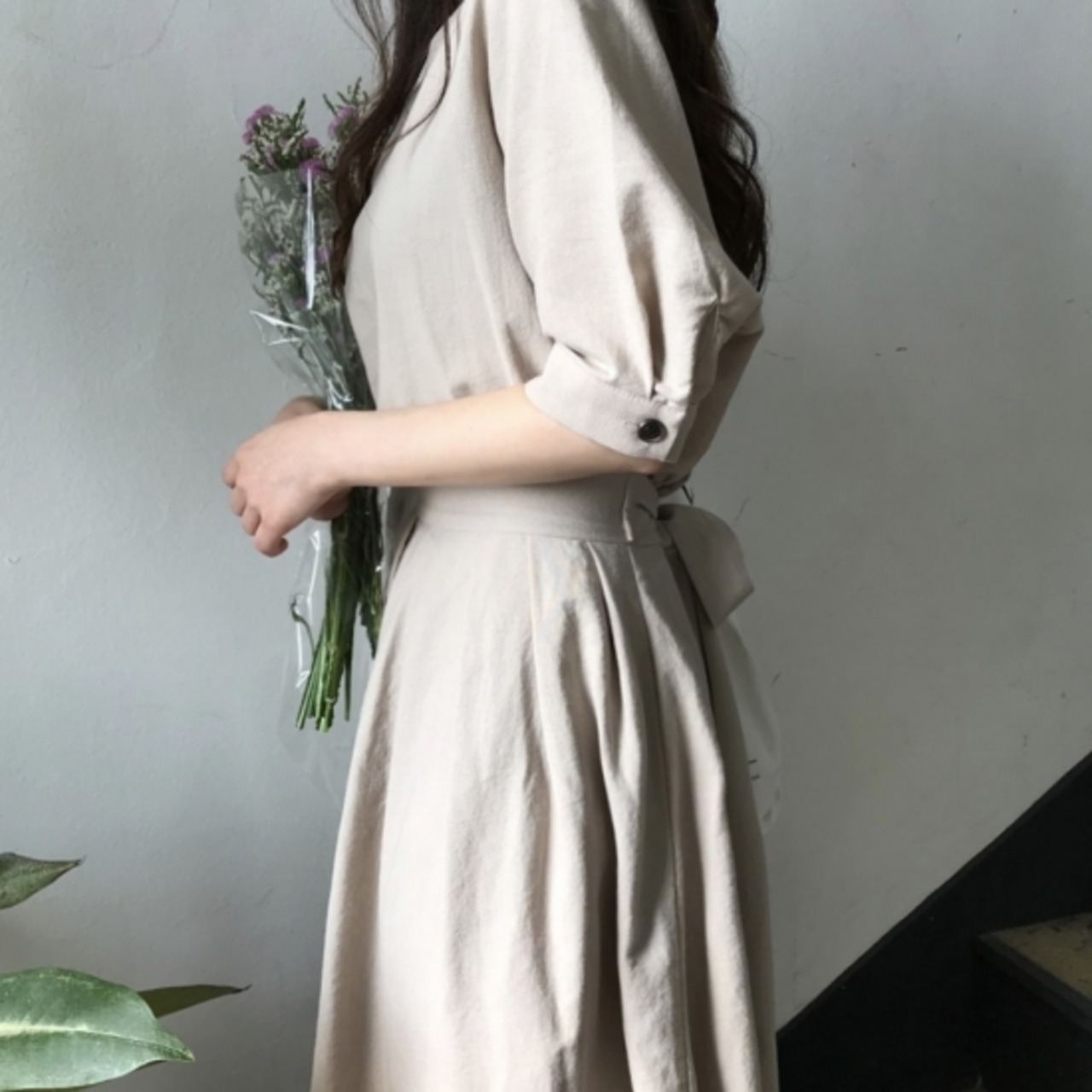 バックリボンとボタンがポイントで後ろ姿まで可愛らしい印象を与えてくれます。