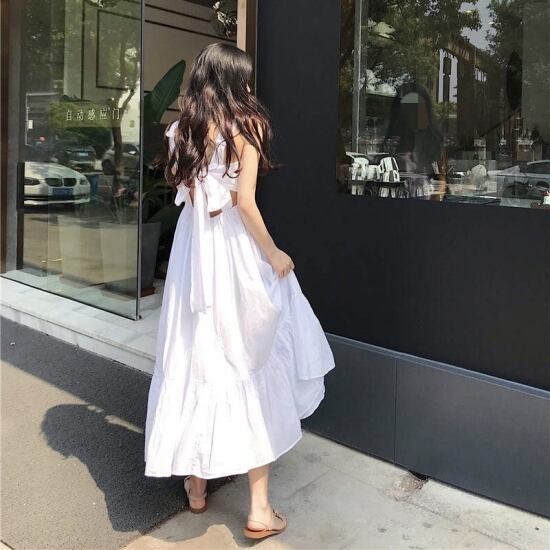 ワンピース ロング 春 夏 Aライン 大きいサイズ きれいめ 白 黒 フレア ワンピース ロング 春 夏 Aライン 大きいサイズ きれいめ 白 黒 フレア 背中見せ ノースリーブ リボン ふんわり