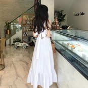 背中の大きなリボンがポイントで後ろ姿まで可愛らしい印象を与えてくれます。