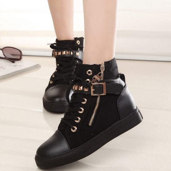 ハイカット レディース スニーカー スタッズ ベルト ドクロ チャーム バリエーション 厚底 スニーカー シューズ 3cm ソール ゴム 合皮 ハイカット レディース スニーカー スタッズ ベルト