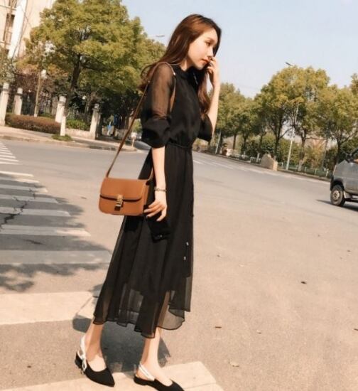 透け感のあるふんわりシフォンがフェミニンな雰囲気を与えてくれます。