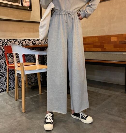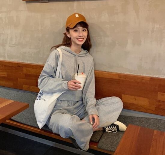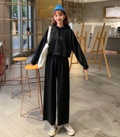 足長効果◎なショート丈のフード付きトップスにワイドパンツのスウェット上下2点セット。