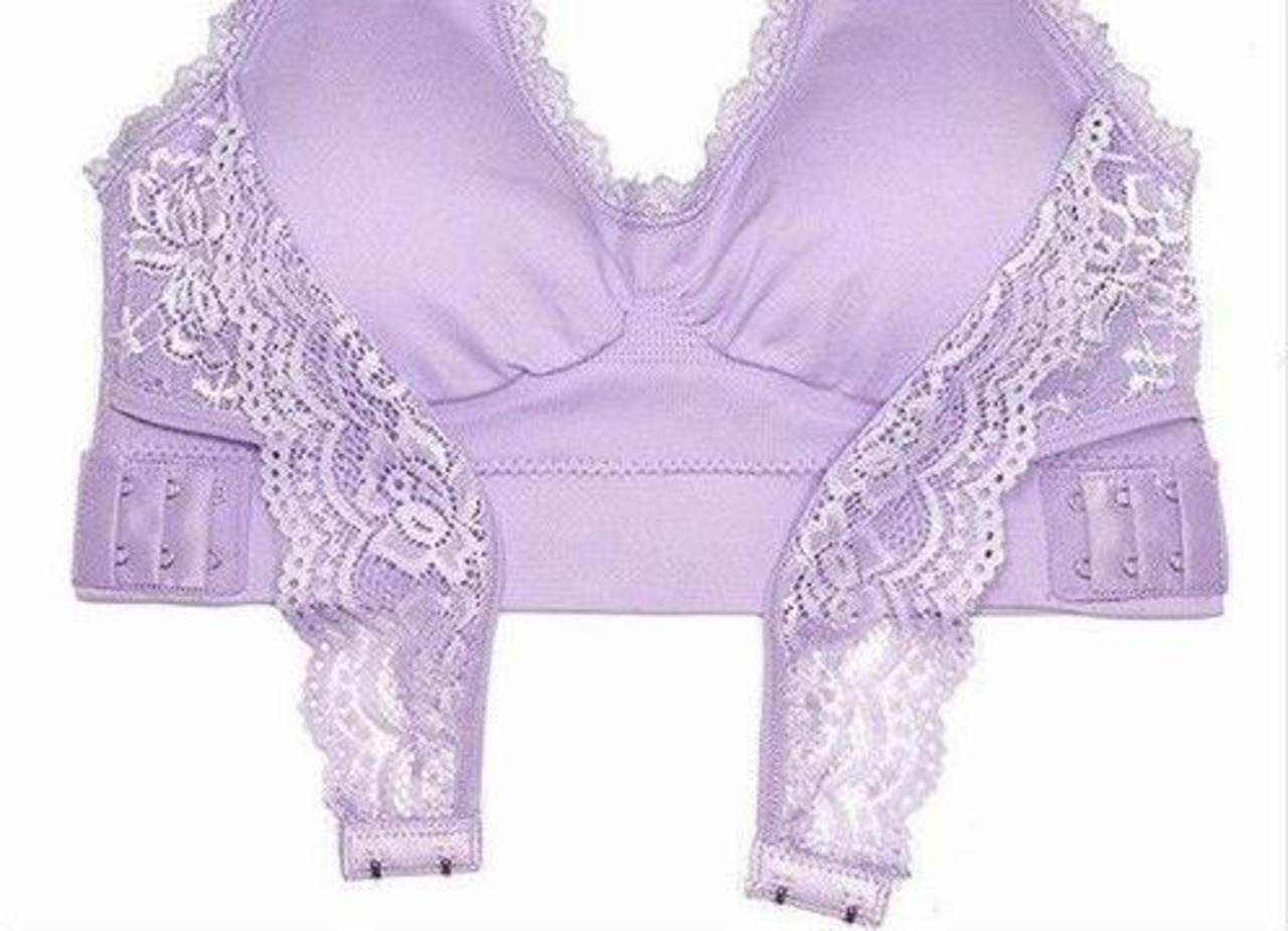 クロスのレースストラップでバストを支えるタイプのブラジャーです。