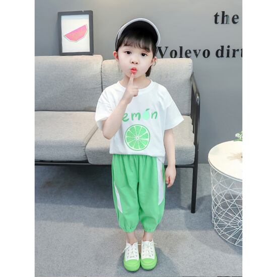 子供服 女の子 セットアップ パンツ ツーピース 2点セット おしゃれ かわいい 男女兼用 半袖 Tシャツ パンツ レモン フルーツ柄 春 夏 可愛い 男の子 カジュアル シンプル