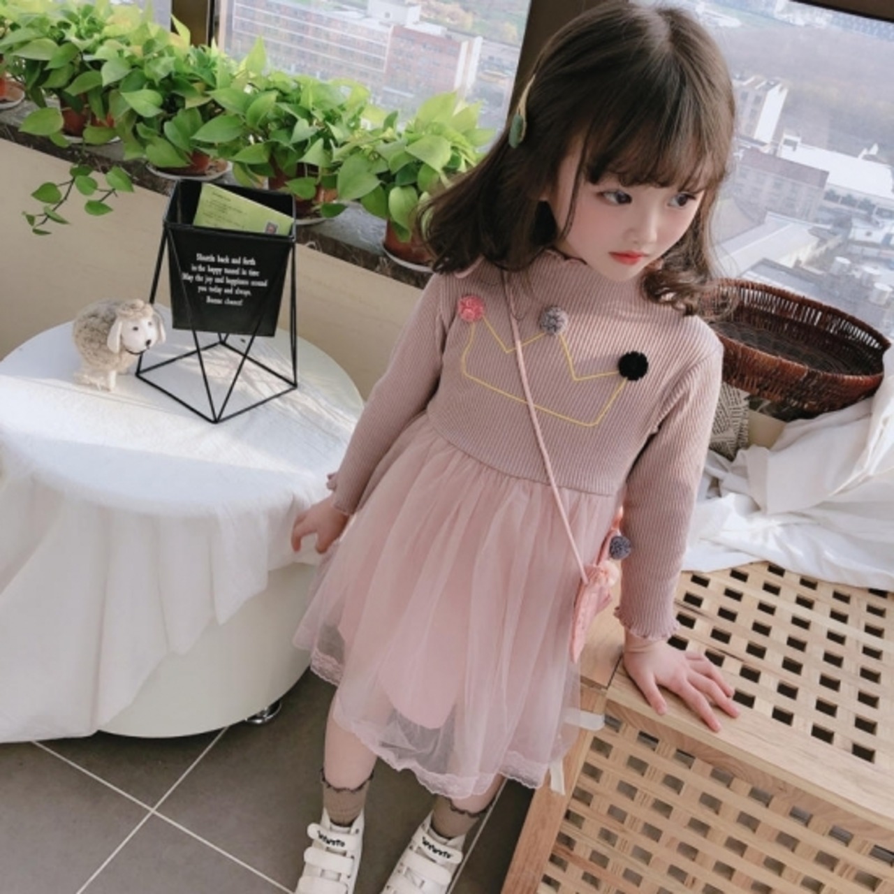 子供服 女の子 キッズ ワンピース スカート 韓国 長袖 チュール フレア 子供服 女の子 キッズ ワンピース スカート 韓国 長袖 チュール フレア ふんわり 王冠 ぽんぽん レース リブ