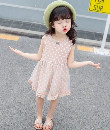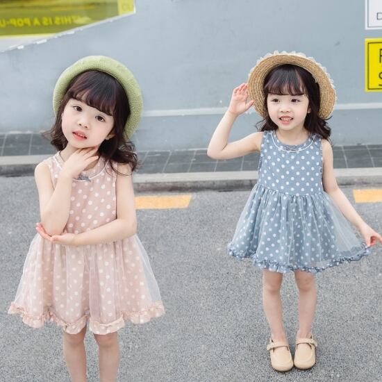 子供服 女の子 ワンピース ワンピ かわいい ドット柄 水玉 チュールワンピ ラウンドネック ノースリーブ ミニドレス 2カラー 春 夏 新作 春服 夏服 sale 子供服 女の子 ワンピース ワンピ