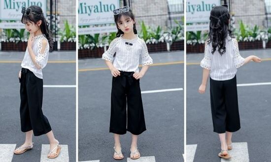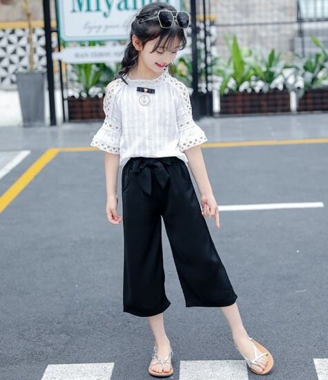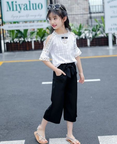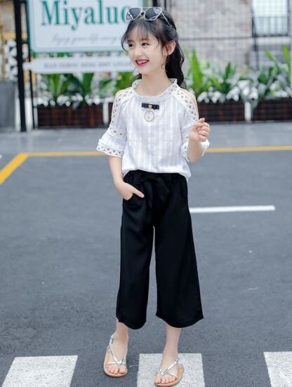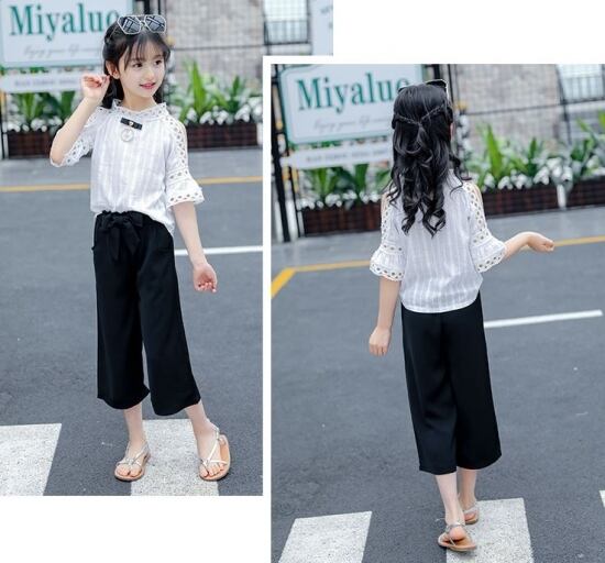 子供服 女の子 ズボン シャツ 2点セット かわいい レース 5分袖 プルオーバーシャツ クロップドパンツ セットアップ 大きいサイズ 春夏 新作 春服 夏服 sale 子供服 女の子 ズボン シャツ