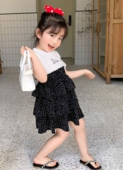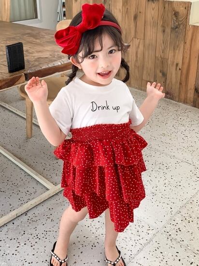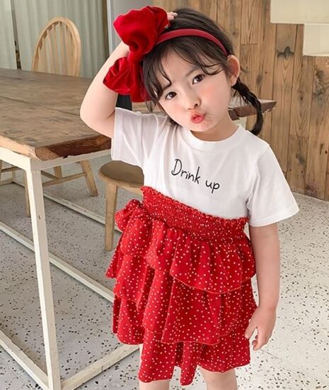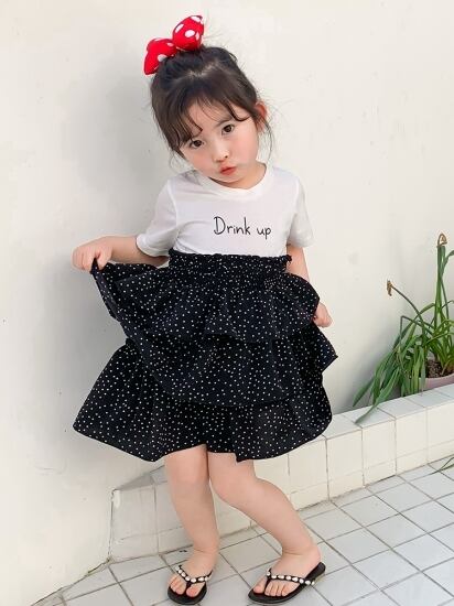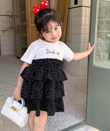 子供服 女の子 ワンピース かわいい キッズ服 ラウンドネック 半袖 Tシャツ 水玉 ティアード スカート 切替え ワンピース ワンピ 春 夏 新作 春服 夏服 sale 子供服 女の子 ワンピース