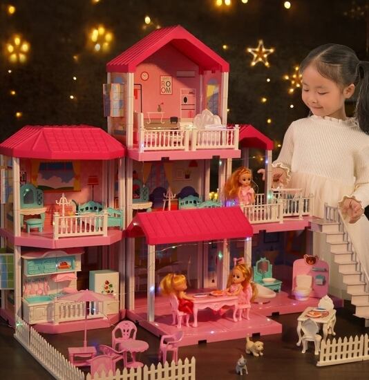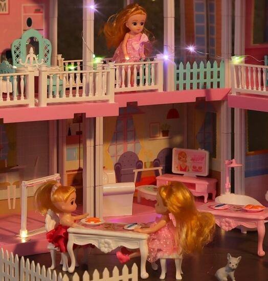 子供 おもちゃ 女の子 ドールハウス プリンセスヴィラ 人形の家 ミニチュア コレクション 大きなお家 かわいい LEDライト おうち時間 おうち遊び おままごと 子供 おもちゃ 女の子 ドールハウス