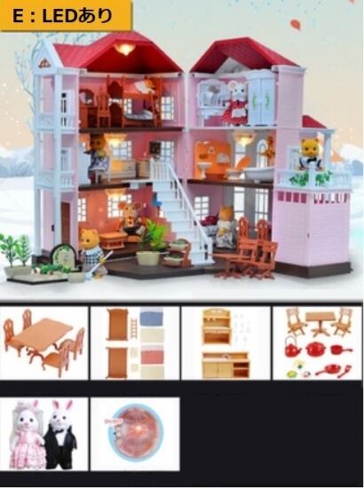 子供 おもちゃ 女の子 ドールハウス どうぶつ家族 人形の家 アニマル ファミリー ハウス 大きなお家 かわいい LEDライト付き おうち遊び おままごと キッズ 子供 おもちゃ 女の子 ドールハウス